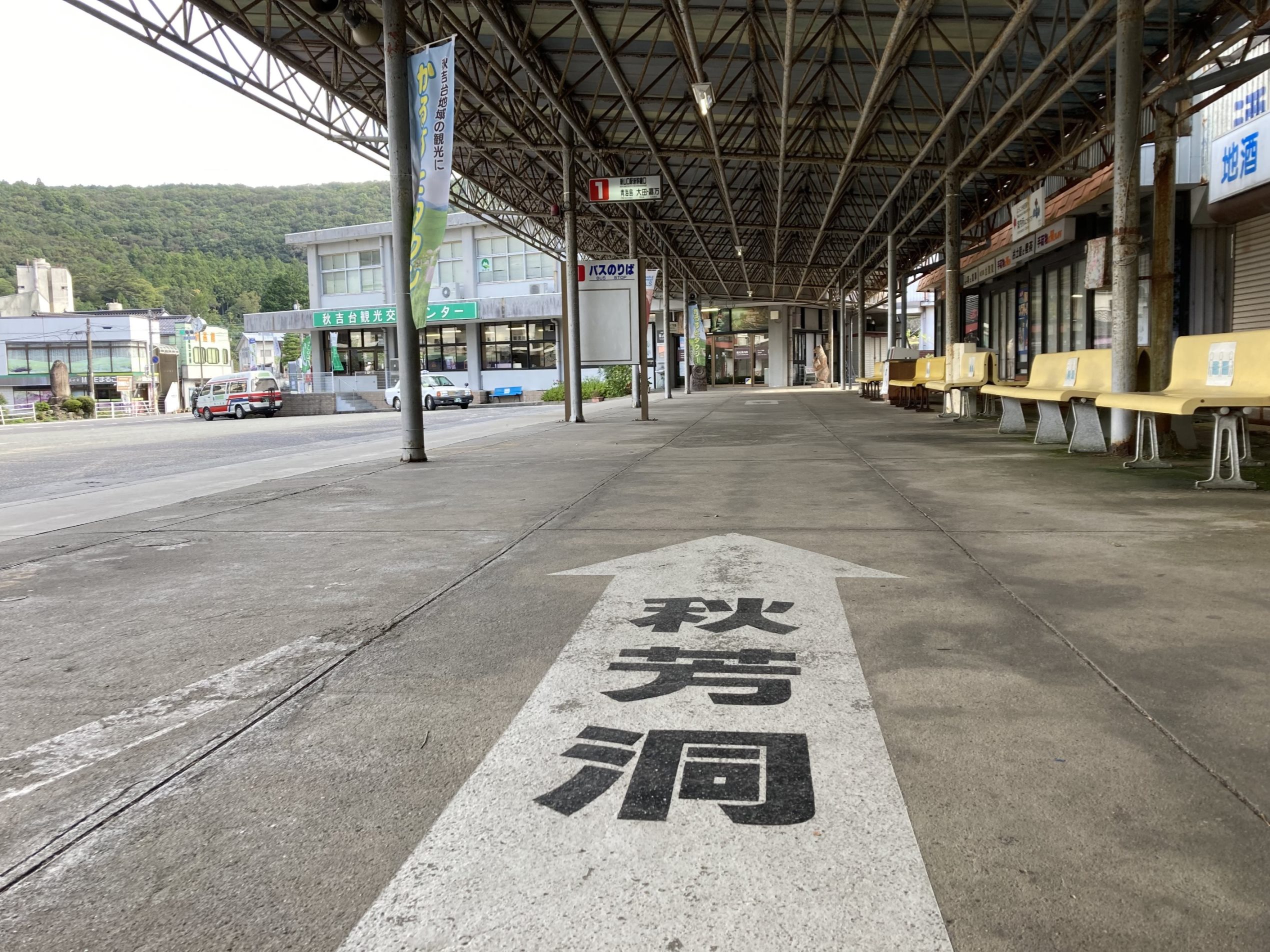 秋吉台は湯田温泉から北西に15㎞ほどのところにありますので、バスで向かいました。