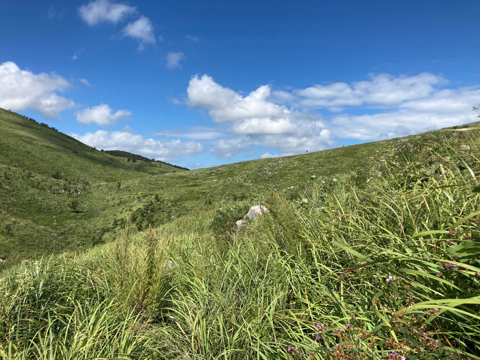 最初はカルスト台地の物珍しさで走ってましたが、日影が無いのは辛かったです。