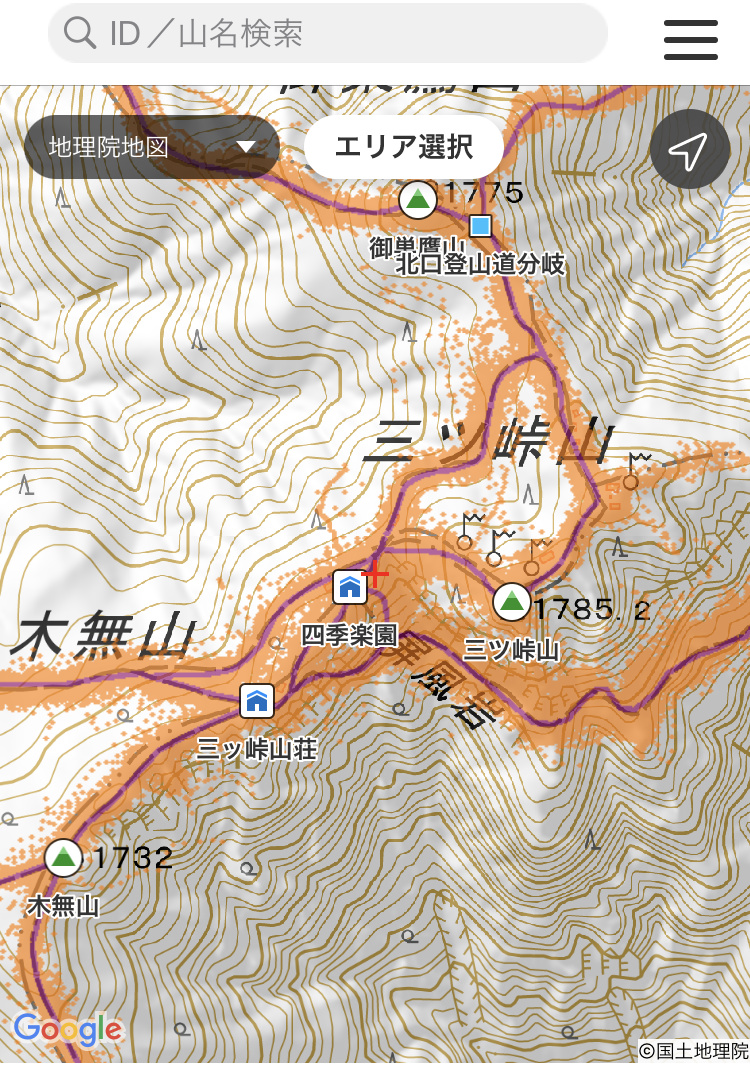 ・本社ヶ丸過ぎで壮大にロスト。50mくらい登り返す羽目に。ガーミンのナビゲーションを見てロストに気づきましたが無かったらと思うと恐ろしい。ここ以外にも何度か、トレイル不明瞭だったですが、ガーミンのナビ機能に助けられました。(初見のトレイルはガーミンにGPXを入れておくのは必須ですね)